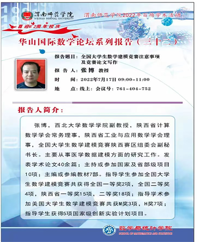 华山国际数学论坛系列报告(三十二)全国大学生数学建模竞赛注意事项及竞赛论文写作