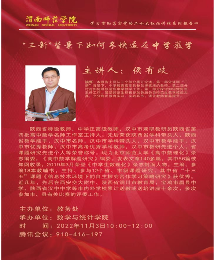 红烛论坛系列报告(四)“三新背景下如何尽快适应中学教学”