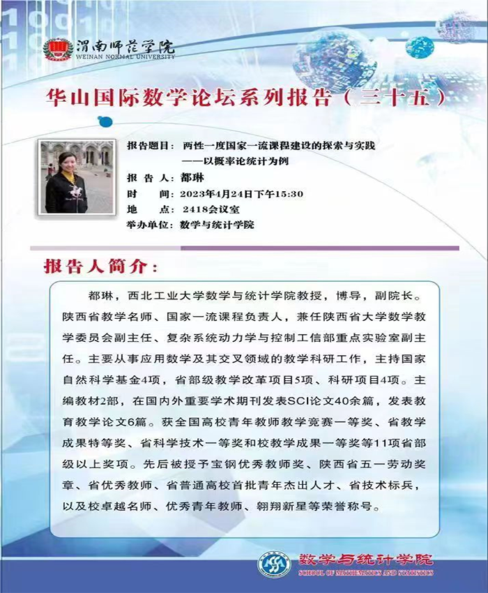 华山国际数学论坛系列报告(三十五)两性一度国家一流课程的建设的探索与实践-以概率论统计为例